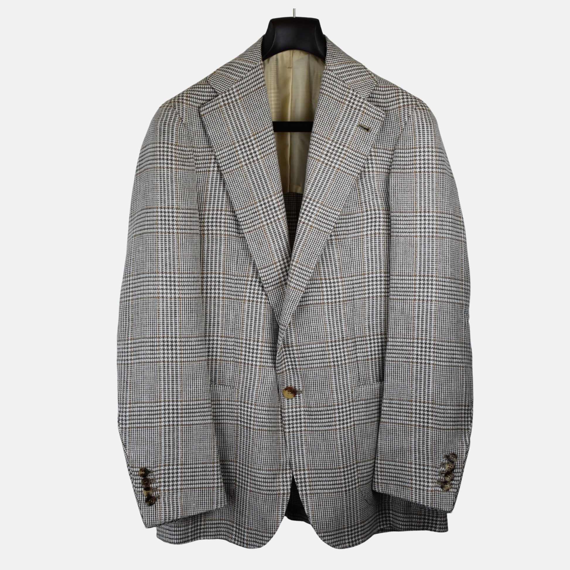 Brown-Cream Checkered Blazer made of Linen/Silk/Cotton (EU 50)