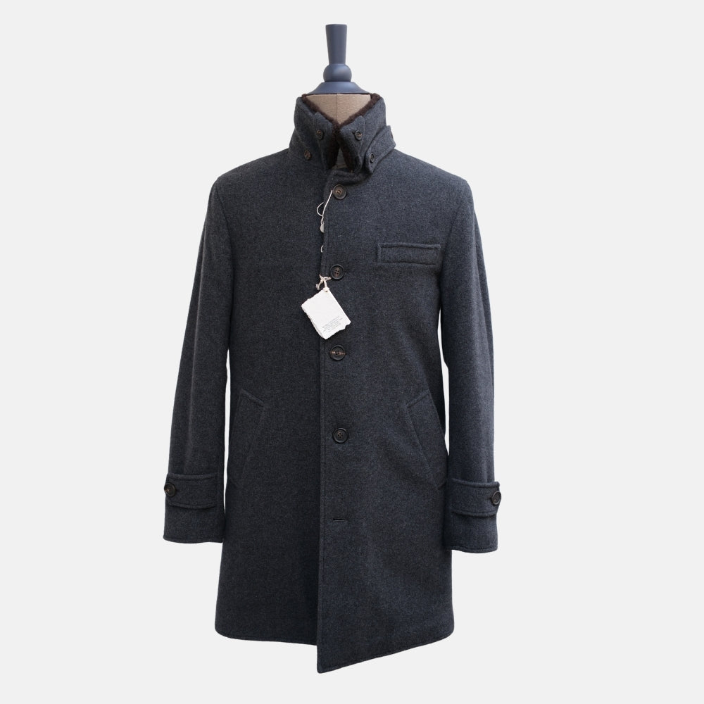Charcoal Shearling Lined Cashmere Coat (S)
