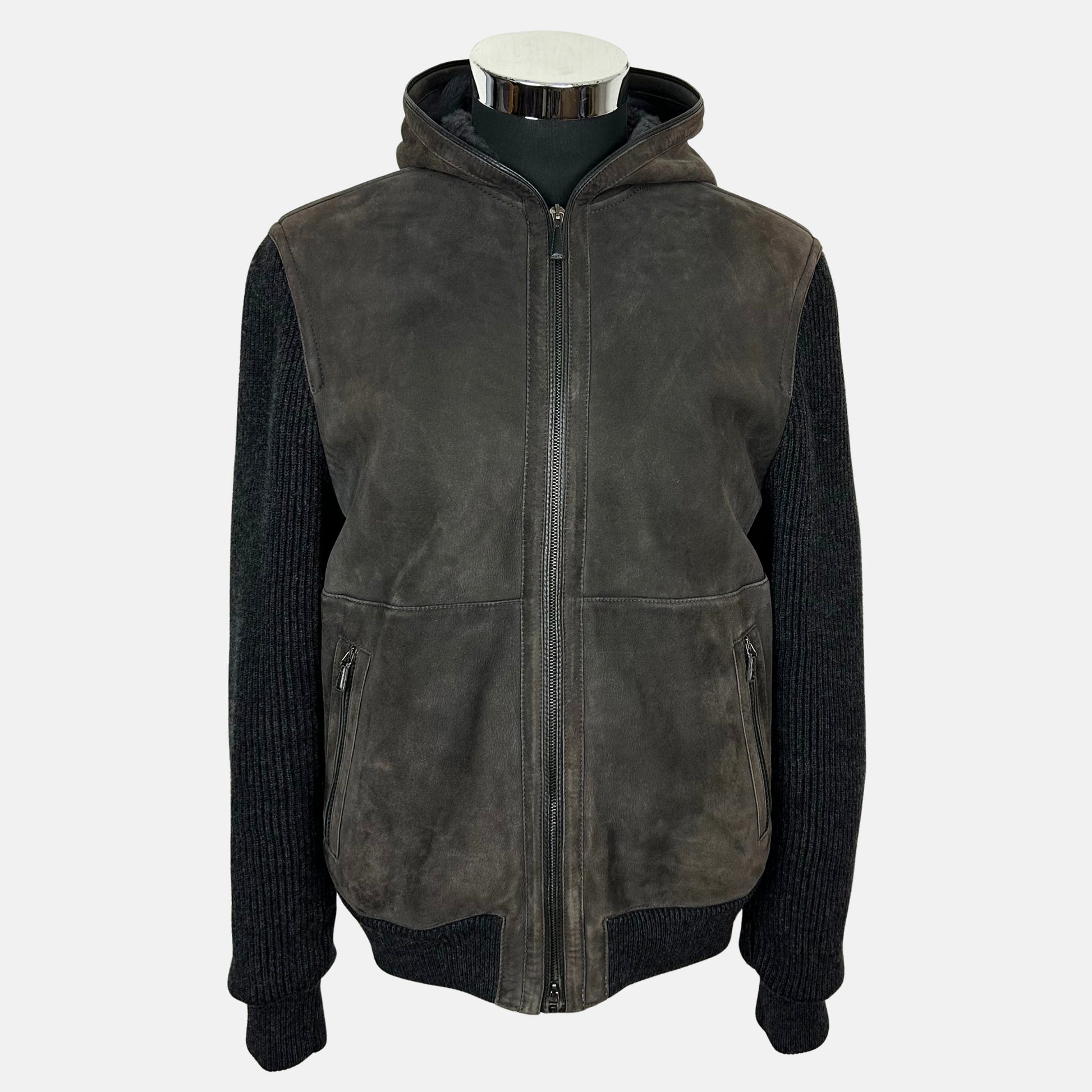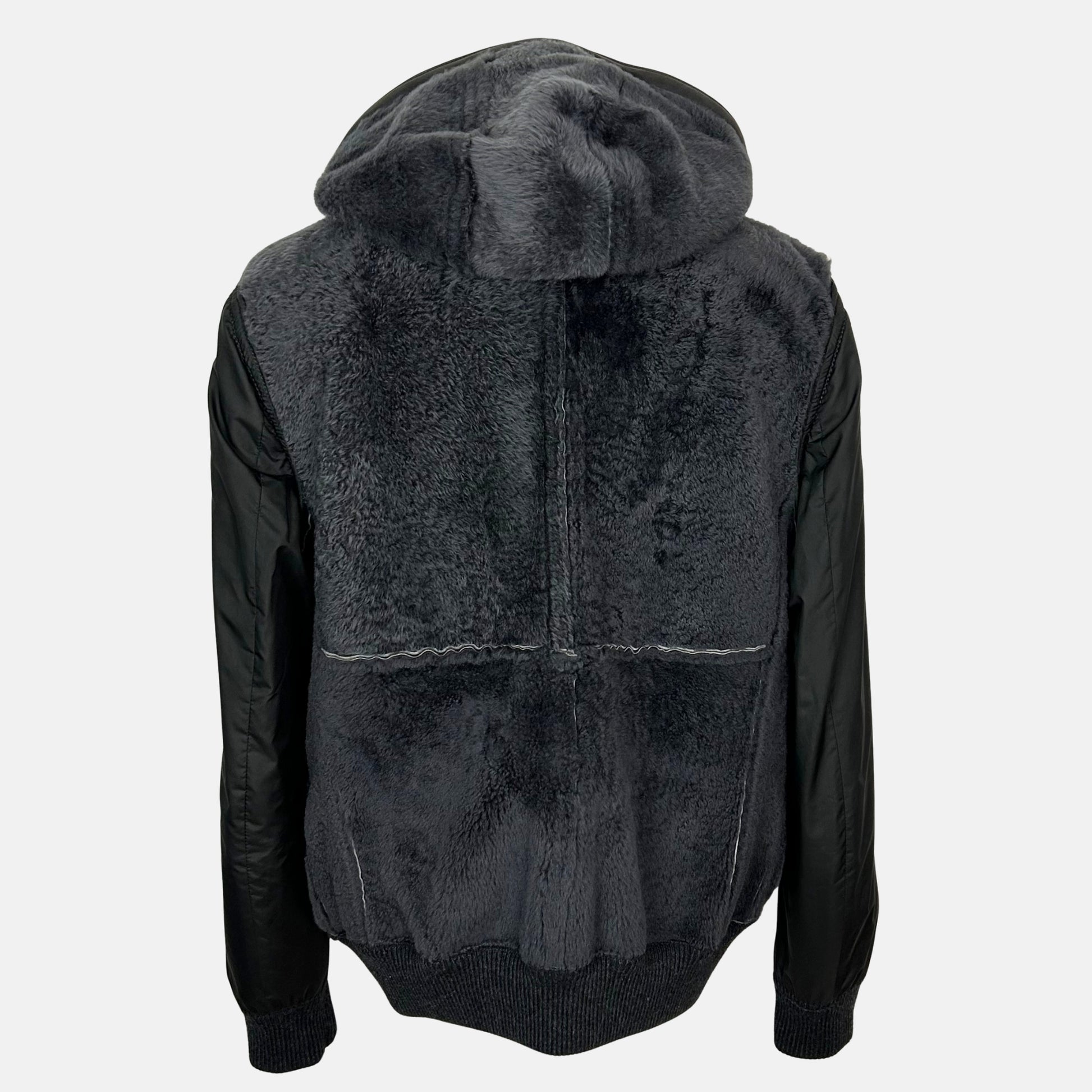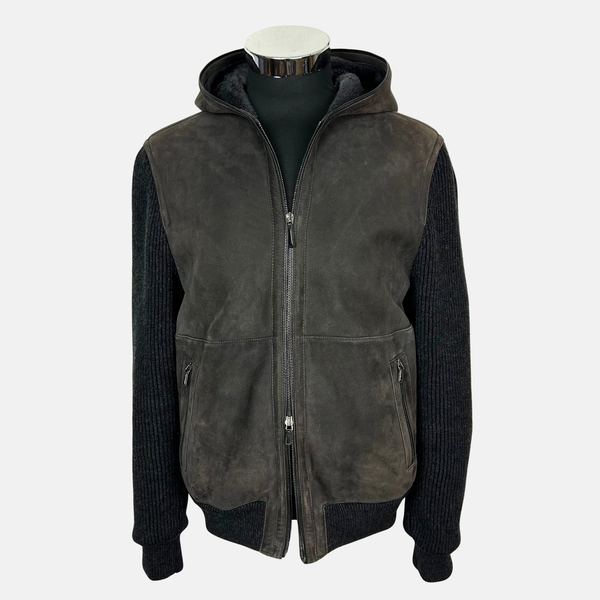 Brown / Anthracite Hooded Bomber Jacket made of Shearling (EU 50)
