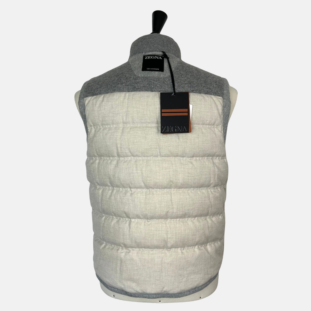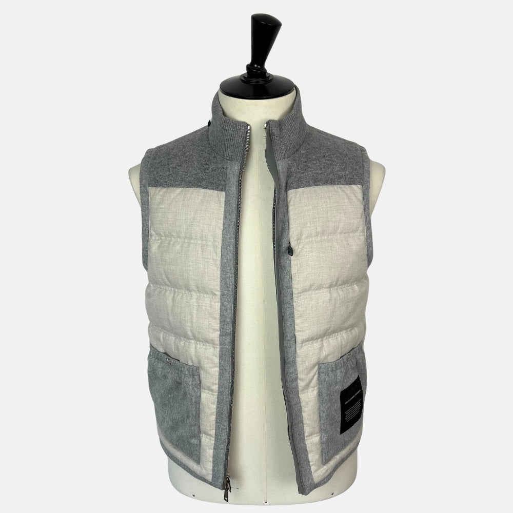 Gray Down Vest made of Cashmere with Leather Details (EU 48)